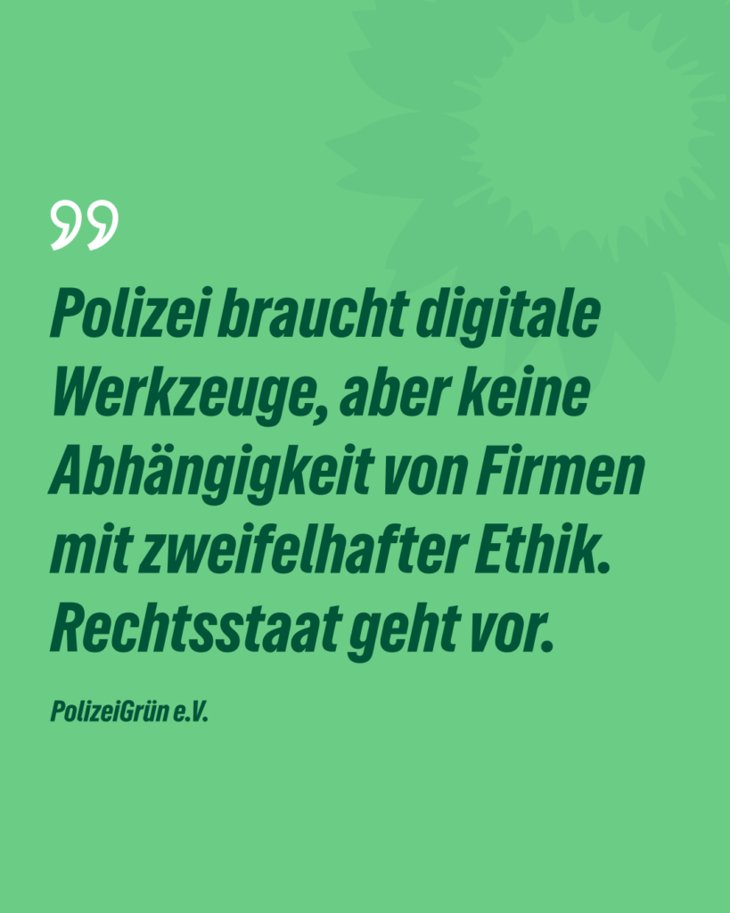 „Die Polizei muss im digitalen Zeitalter handlungsfähig bleiben, aber nicht um jeden Preis. Wir brauchen eine Polizei der Daten, die Technologie nutzt, ohne sich ihr auszuliefern – und die ihre Legitimation aus demokratischer Kontrolle und nicht aus undurchsichtigen Algorithmen bezieht.“